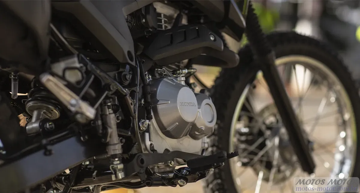 A Honda NXR 160 Bros 2025 apresenta um motor monocilíndrico OHC de 160cc, tecnologia FlexOne, que entrega potência máxima de 14,3 cv com etanol e 14,2 cv com gasolina. O torque máximo alcança 1,45 kgf.m com etanol e 1,44 kgf.m com gasolina, valores adequados para o uso misto que a moto se propõe. A transmissão é manual de cinco marchas, com a quinta marcha apresentando uma relação 3,6% mais longa que a versão anterior, contribuindo para maior economia de combustível em velocidades de cruzeiro. O sistema de freios conta com disco na dianteira e na traseira, oferecendo duas opções: sistema CBS (Combined Braking System), que distribui a frenagem entre as rodas, e a opção ABS (Anti-lock Braking System) na roda dianteira, para maior segurança em situações de frenagem de emergência.