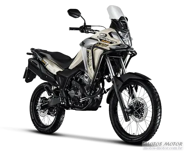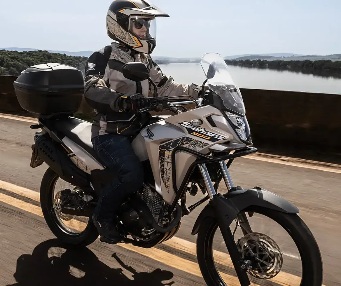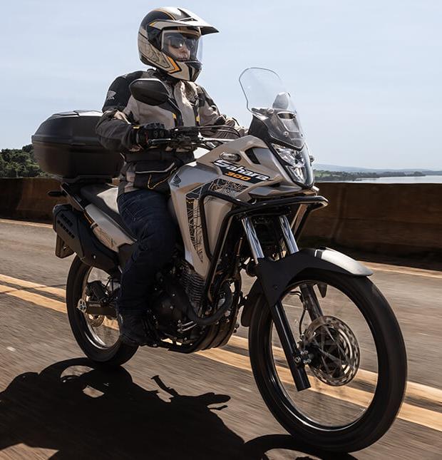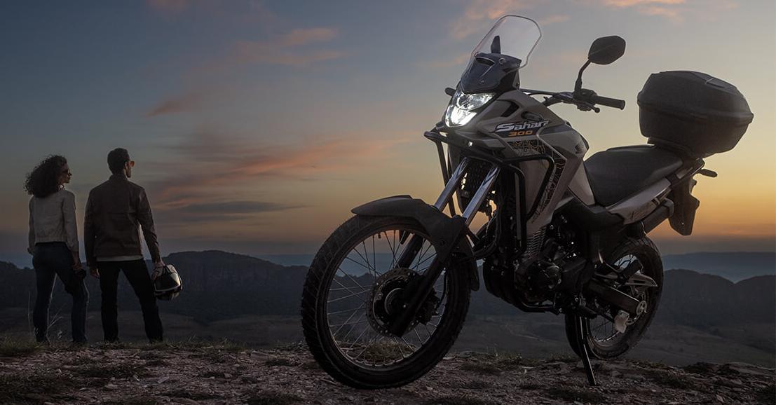 A Honda Sahara 300 é uma motocicleta trail versátil, ideal para uso urbano e off-road. Com motor monocilíndrico de 293,5 cc e transmissão de 6 velocidades, oferece agilidade e capacidade de aventura. Possui freios a disco com ABS, suspensão de longo curso e pneus Metzeler Karoo Street. Disponível em versões Standard, Rally e Adventure, com destaque para as proteções extras desta última.