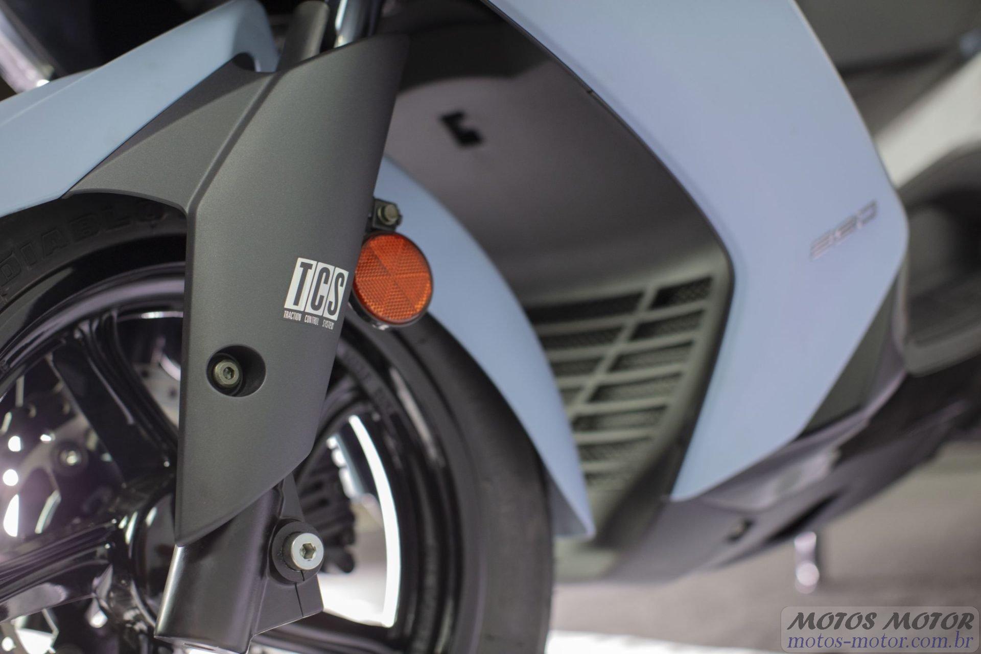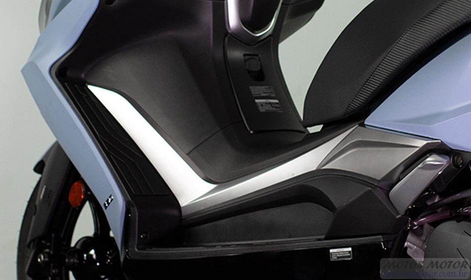 | Pneus | Rodas de liga leve de alumínio, aro dianteiro 14 polegadas com pneu 120/80-14 M/C (58S) e aro traseiro 13 polegadas com pneu 150/70-13 M/C (64S). |