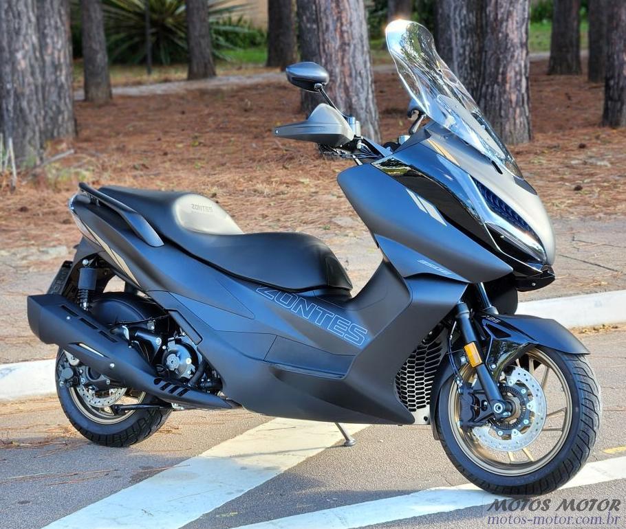 A Scooter Zontes 350 E é uma scooter de média cilindrada com design agressivo, linhas fluidas e equipamentos impressionantes. Seu motor monocilíndrico de 349 cm³ oferece boa potência e torque, e a transmissão CVT proporciona aceleração suave. Ela conta com freios ABS, controle de tração, painel TFT colorido, conectividade Bluetooth e aquecedor de manoplas. Com preço competitivo, é uma opção atrativa para uso urbano e suburbano.