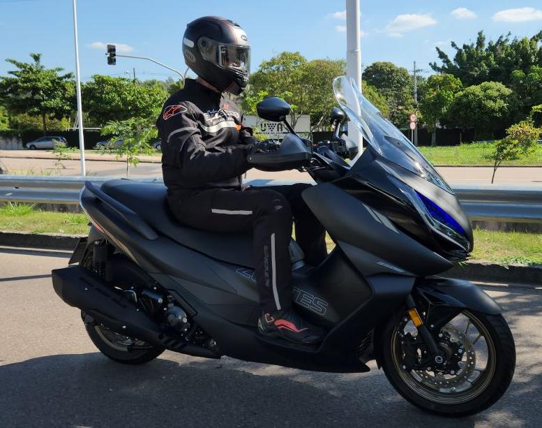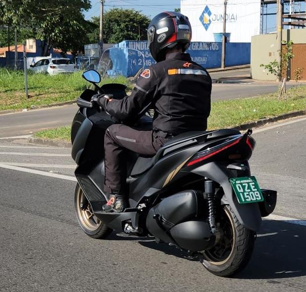 | Pneus | Rodas de 15″ (dianteiro) e 14″ (traseiro) com pneus 120/70-15 (dianteiro) e 140/70-14 (traseiro) |